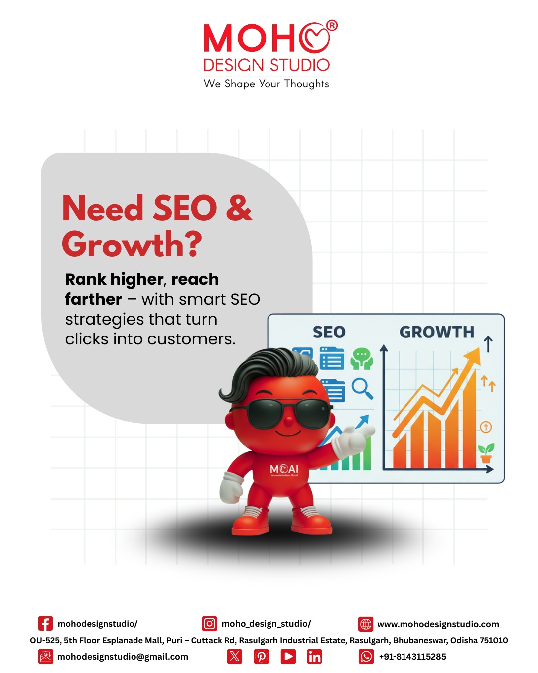 MOHO Design Studio is a creative branding and digital marketing agency specializing in graphic design, website development, social media marketing, branding strategy, and digital promotions. With a results-driven approach, MOHO Design Studio helps startups, MS MEs, hospitals, hospitality brands, and corporate businesses build a strong online presence, enhance brand visibility, and drive customer engagement. Our expertise in SEO-friendly web design, performance marketing, content creation, and brand consulting ensures measurable growth and long-term digital success. []